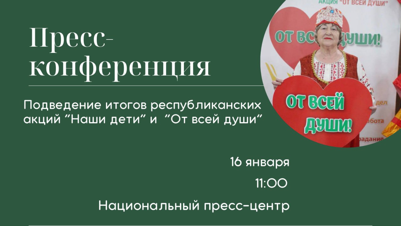16.01 Пресс-конференция, посвященная подведению итогов республиканских акций "Наши дети" и "От всей души"