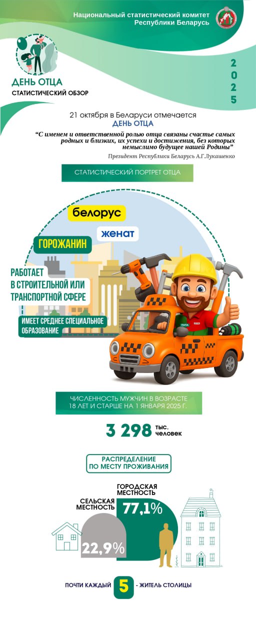 Статистический портрет отца: белорус, горожанин, женат, работает в строительной или транспортной сфере, имеет среднее специальное образование.