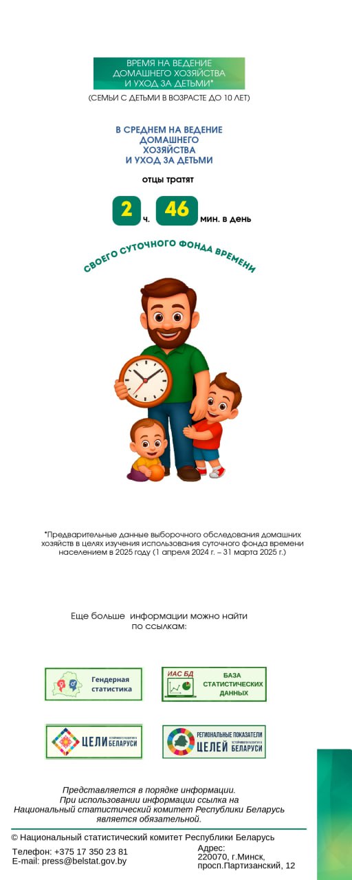 Время на ведение домашнего хозяйства и ухода за детьми (семьи с детьми до 10 лет) в среднем - 2:16 мин в день.